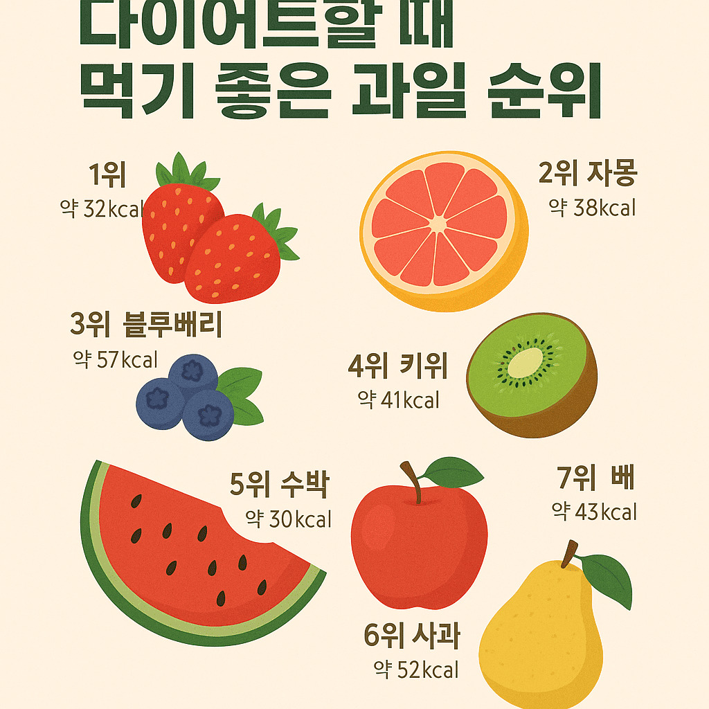 | 1위 | 딸기 | 32kcal | 수분 + 낮은 당도 |