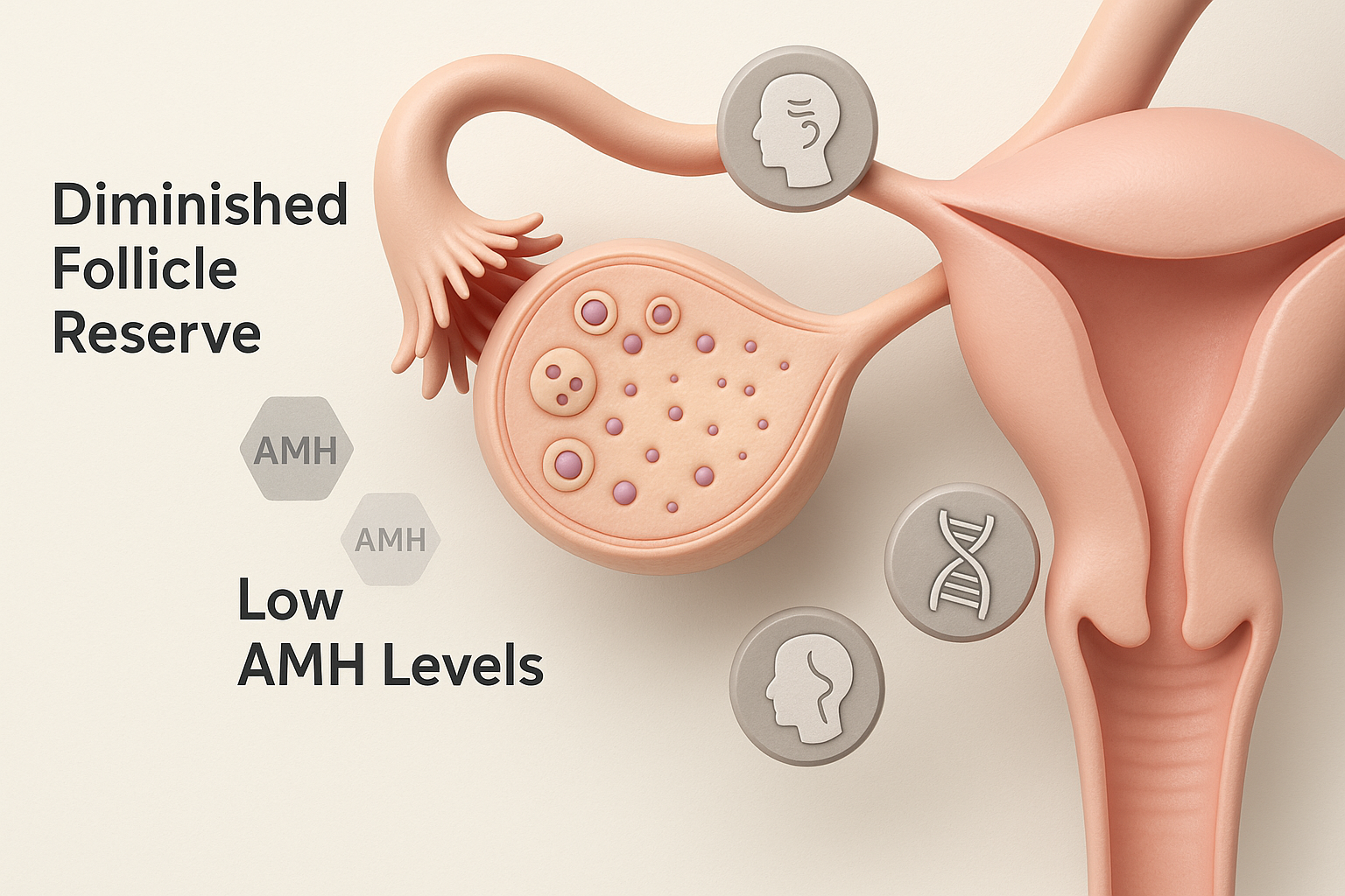 낮은 AMH 수치와 짧은 생리주기는 함께 나타날 경우, 조기 난소기능저하(DOR, Diminished Ovarian Reserve)의 가능성을 시사합니다. 난소 내 남아 있는 난포 수가 적을 경우, 몸은 빠르게 배란하려는 경향을 보이며, 이로 인해 생리주기가 짧아질 수 있습니다.