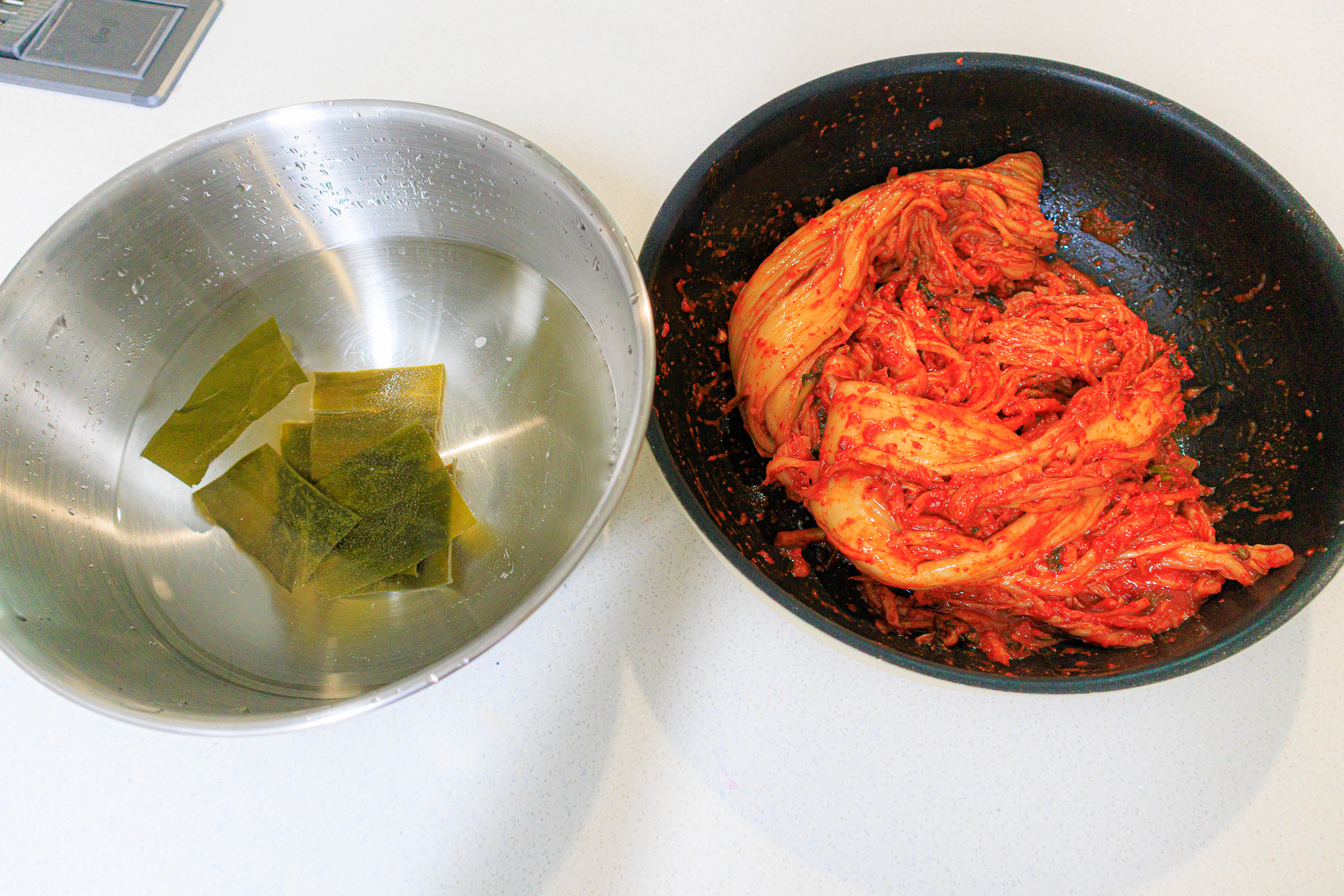 동시에 물 1.5L에 다시마 여러 장을 넣어 다시마물을 만들어 둡니다.
