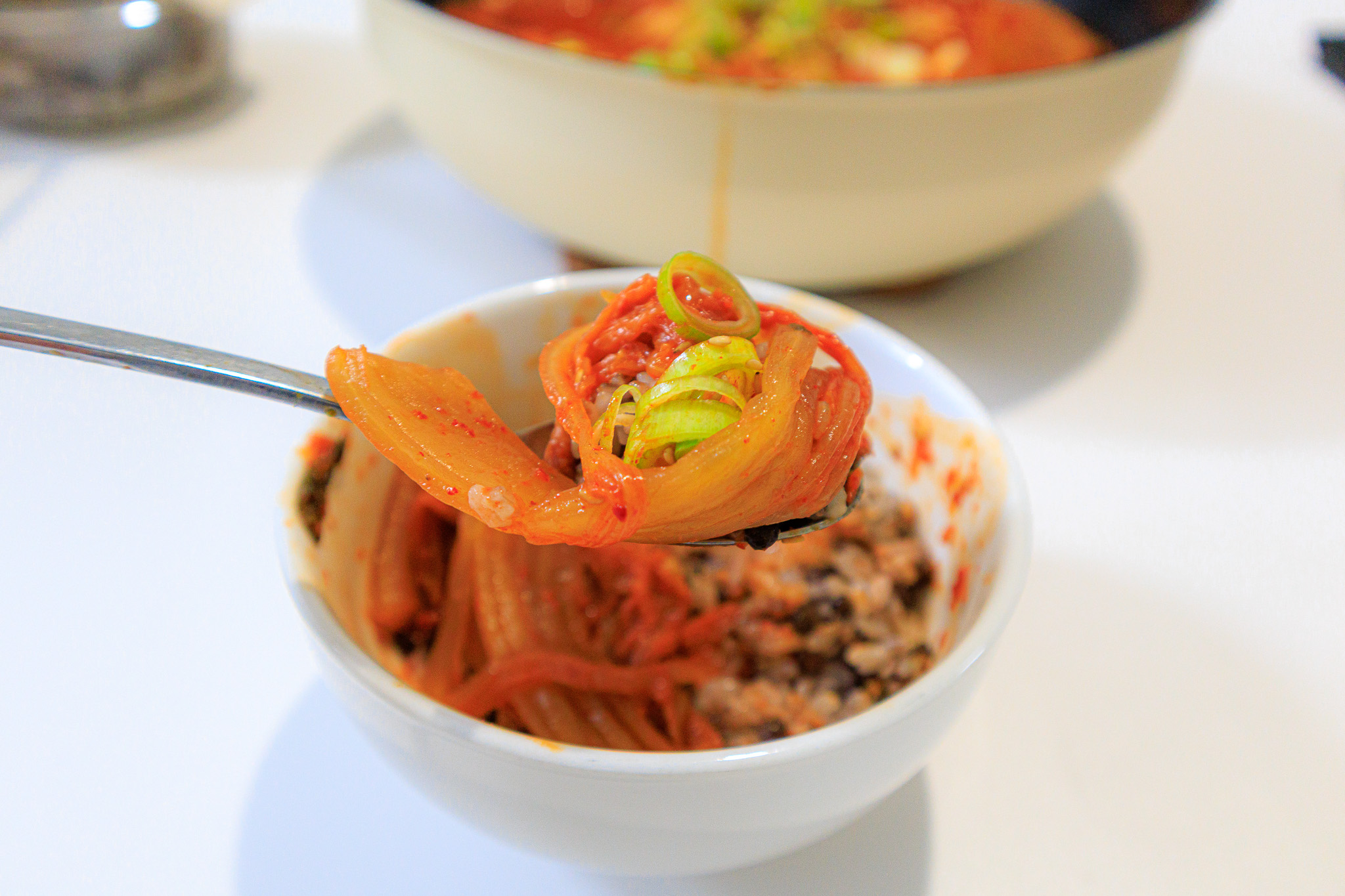 김치를 밥에 돌돌 말아 먹으면 꿀맛이에요.