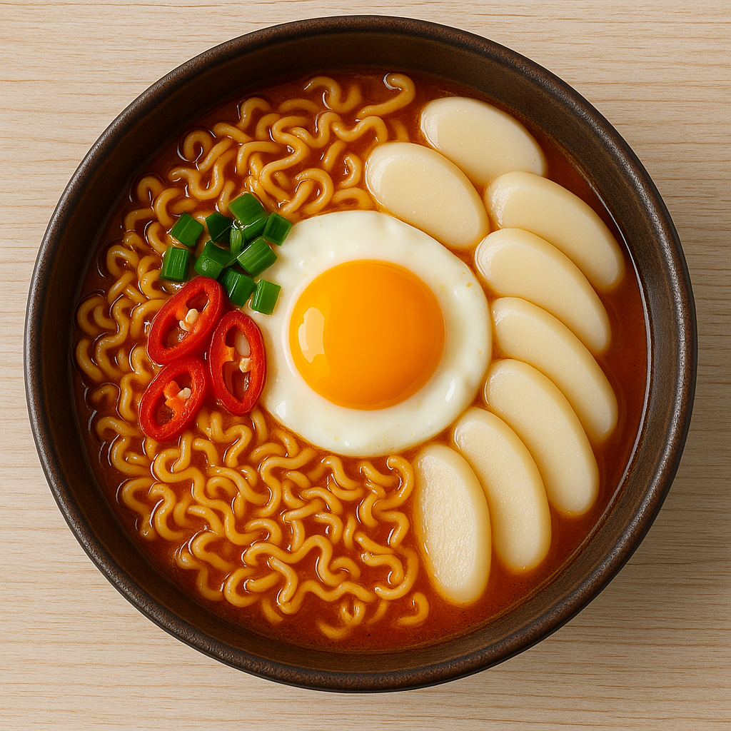 라면 끓일 때 떡국떡을 넣고 함께 끓이면 든든하고 쫄깃한 식감이 더해집니다. 계란을 풀어 넣고 대파로 마무리하면 푸짐한 한끼로 손색없어요.