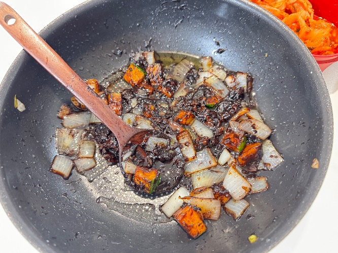 저는 양파와 애호박을 고깃기름에 더 볶은 후에