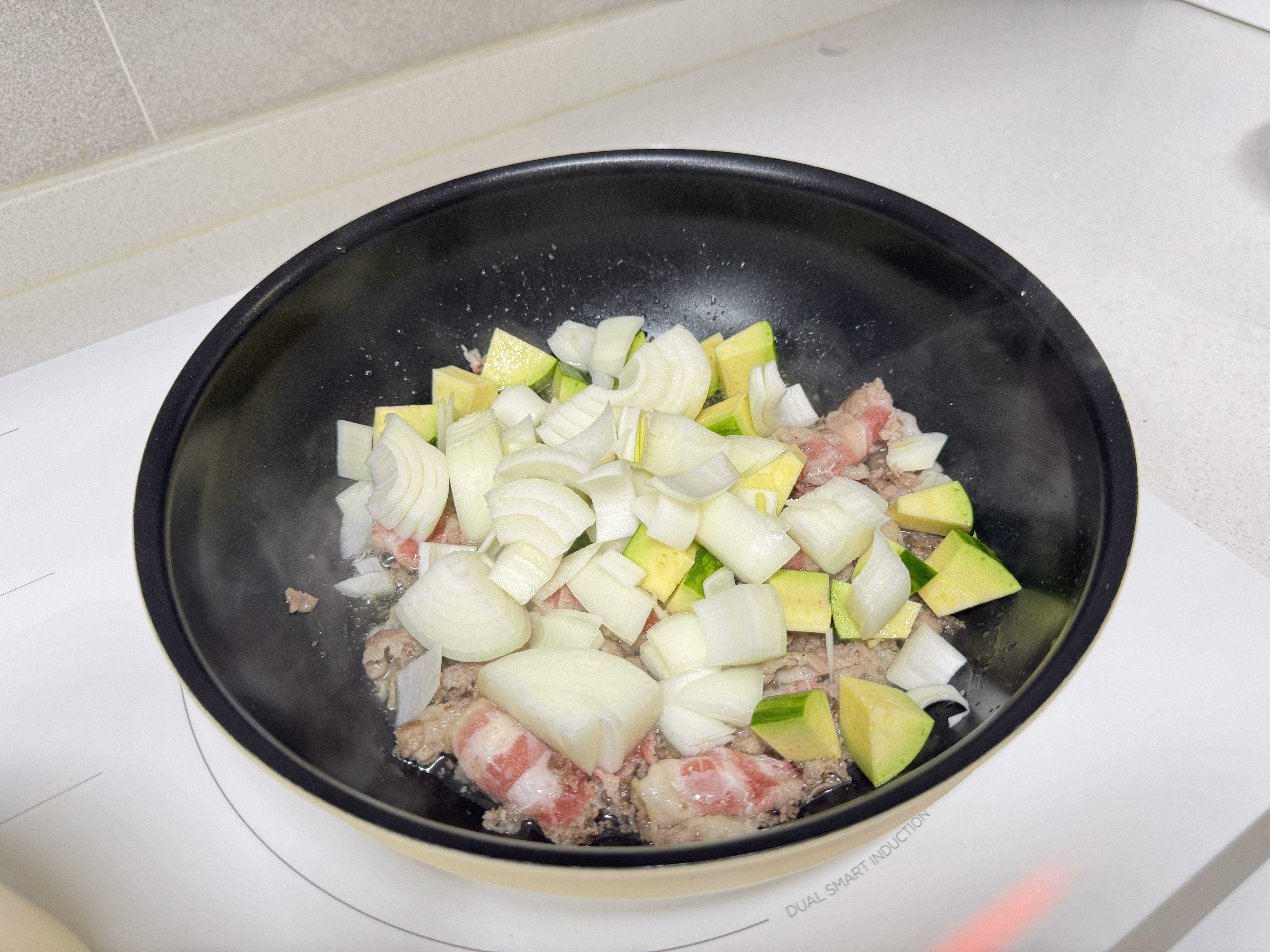 저는 양파와 애호박을 고깃기름에 더 볶은 후에